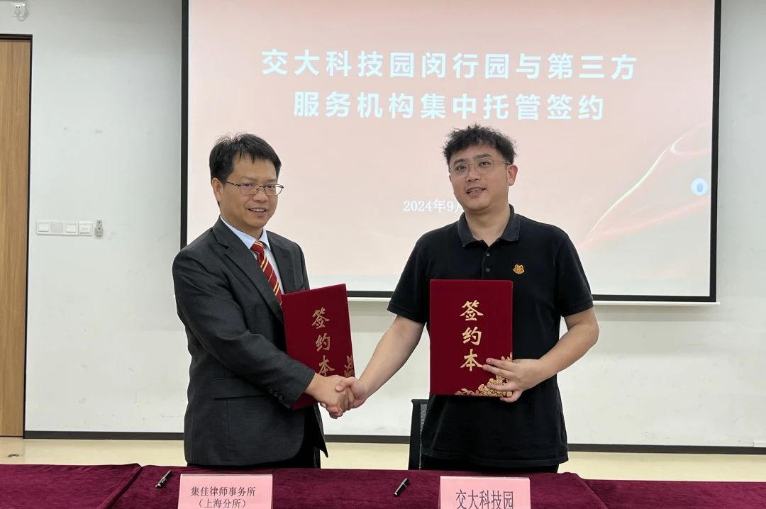 为助力企业科技创新和经济发展护航保障,提供高质量维权公益援助,会上举行了“上海市开发区协会维权援助工作站交大科技园闵行园工作室”揭牌仪式,交大科技园闵行园与雷火官网上海分所进行了托管签约。