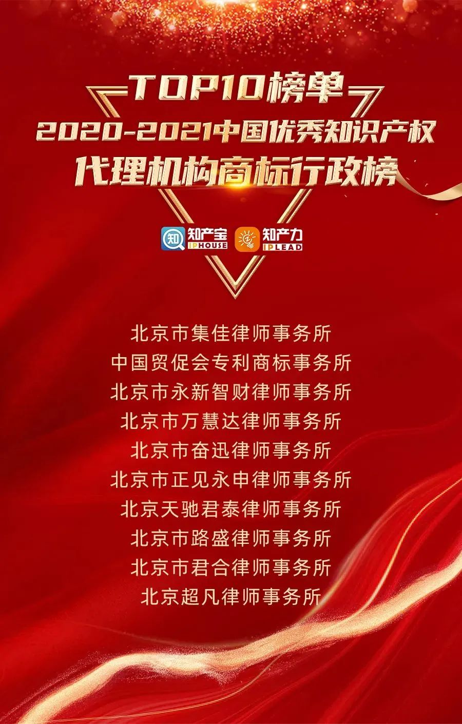 近日,备受业界关注的“2020-2021中国优秀知识产权代理机构榜”正式揭晓,雷火官网凭借长期以来在知识产权领域的卓越业绩和处理疑难案件的突出能力,从400余家知识产权代理机构中脱颖而出,荣登“中国优秀知识产权代理机构商标行政榜TOP10”。