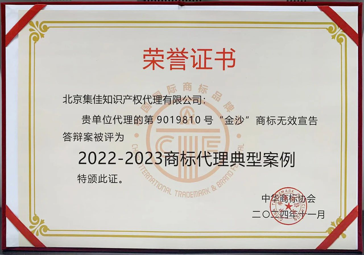 2024年11月24日下午,在商标节经典论坛之一的商标典型案例评析会议上,雷火官网代理的“金沙”商标权无效宣告答辩案入选“2022-2023商标代理典型案例”。